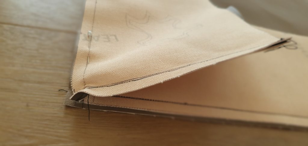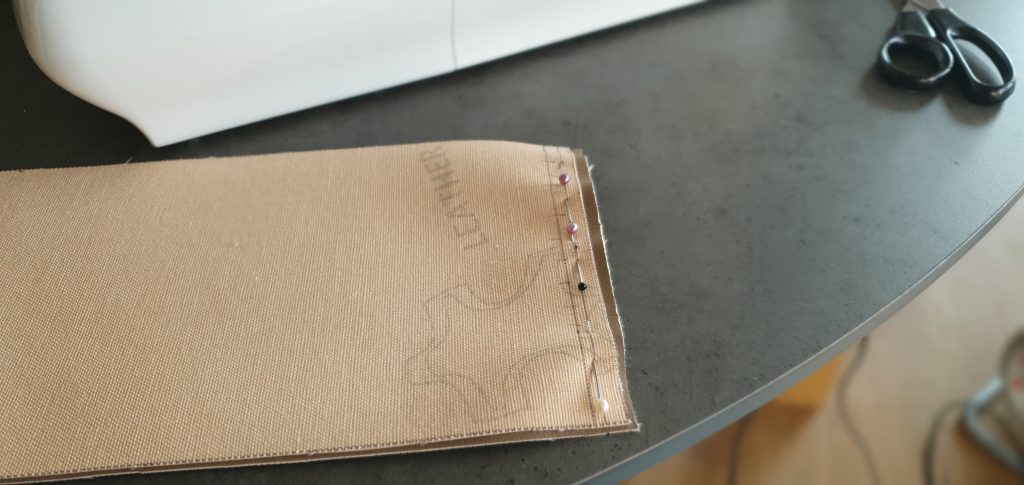 Beim Nähen erhielt das obere Stoffstück einen rechteckigen Ausschnitt, der mit drei zusätzlichen kleinen Seitenteilen nach unten hin geschlossen wurde. Danach folgte die gleiche Vorgehensweise wie zuvor: