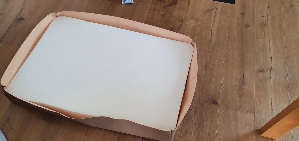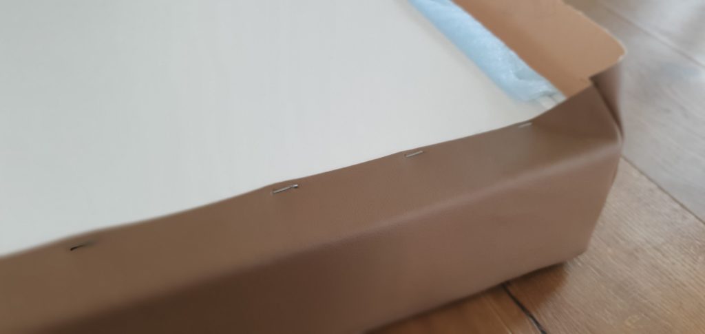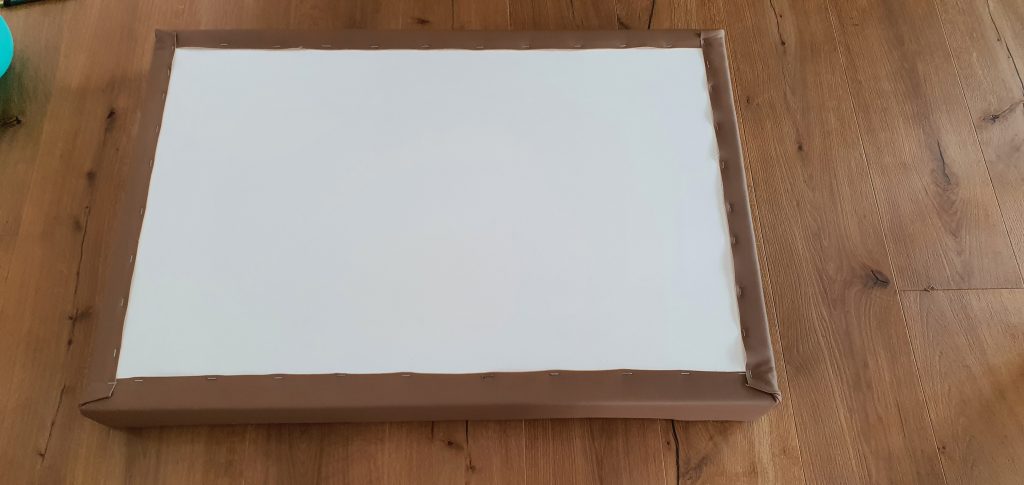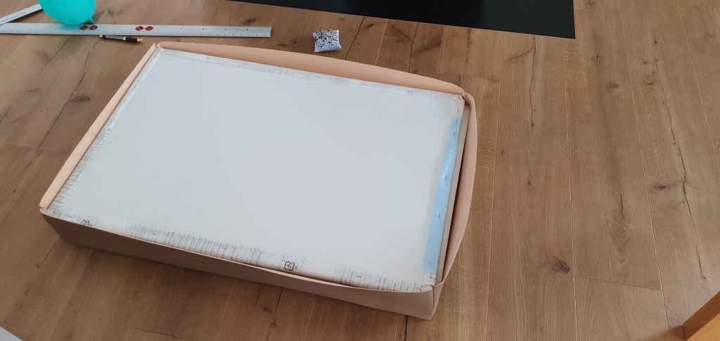 Um zusätzlichen Komfort zu schaffen, habe ich das Brett mit einer dünnen Schicht Schaumstoff ummantelt – hier konnte ich praktischerweise Verpackungsmaterial wiederverwenden.
