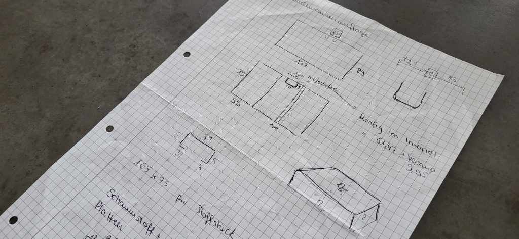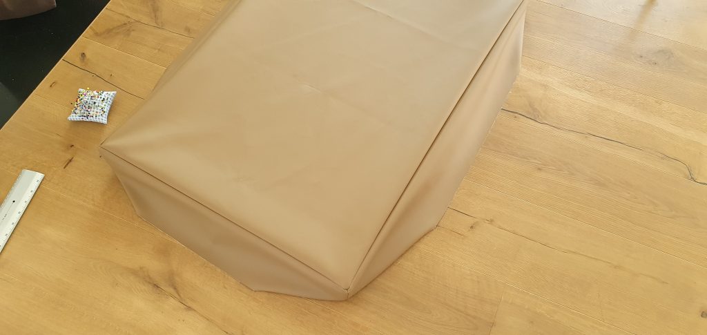 Die Höhe des Bezugs hängt von der gewählten Polsterung ab. Ich verwendete 12 cm hohen Schaumstoff.