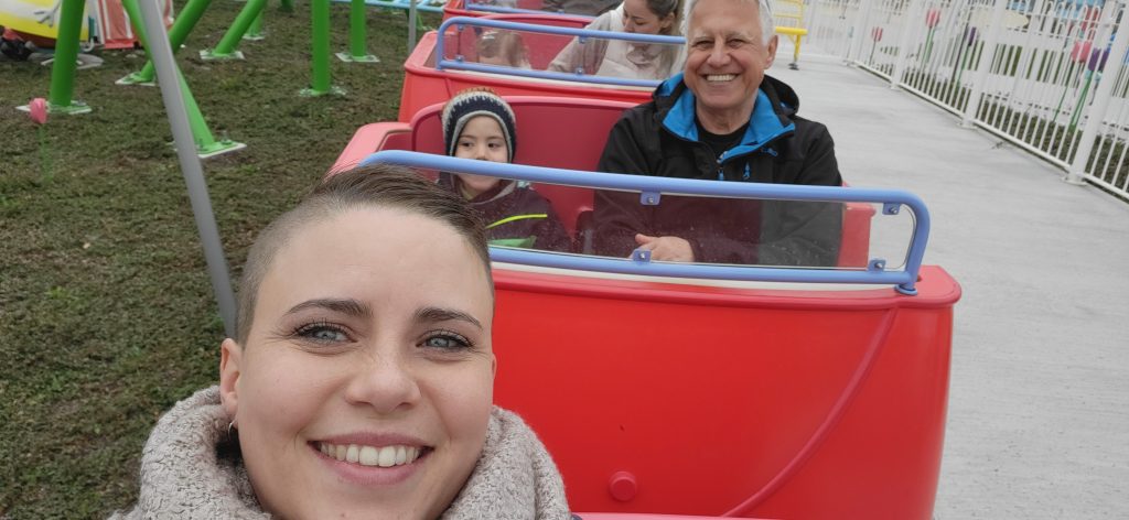 Unsere erste Station war Papa Wutz’ Achterbahn. Für Jake leider noch nichts – also machten sich Logan, Mama und Opa auf den Weg. Logan fand die Bahn „ganz okay“, hätte sich aber etwas mehr Action gewünscht.