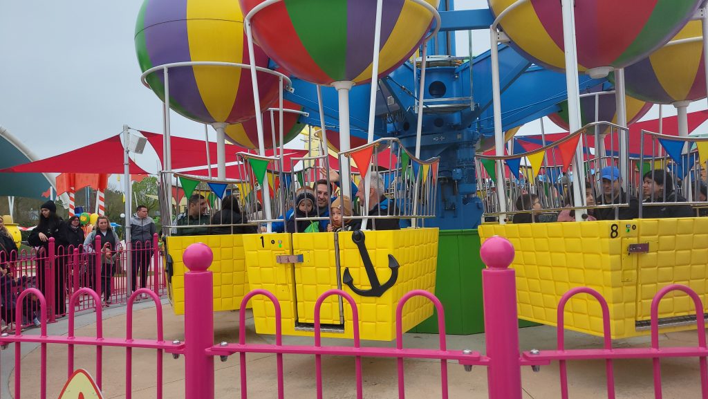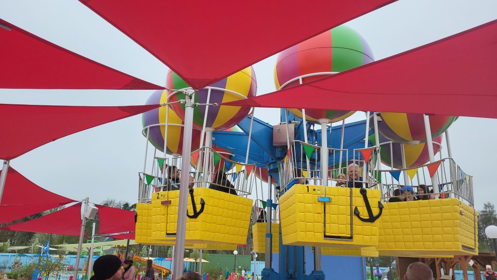 Währenddessen ging es für Jake mit Papa, Oma und Baby Megan weiter zu Peppas Ballonfahrt – perfekt für kleinere Kinder. Die Wartezeit war kurz, die Fahrt entspannt. Danach wurde es wilder: Auf zu Schorschs Dino Abenteuer! Jake war begeistert – und wir waren im Laufe des Tages gleich mehrfach dort.