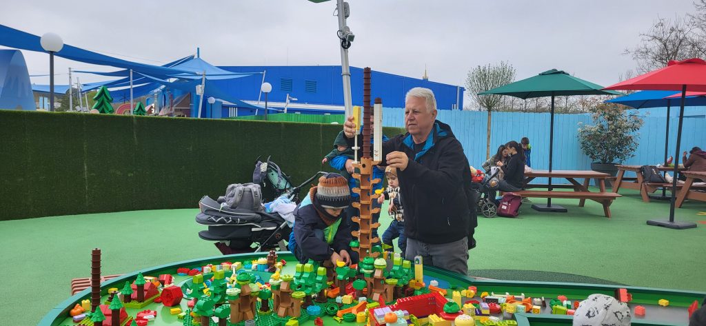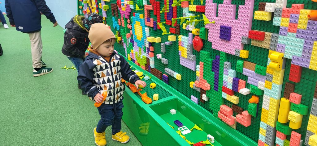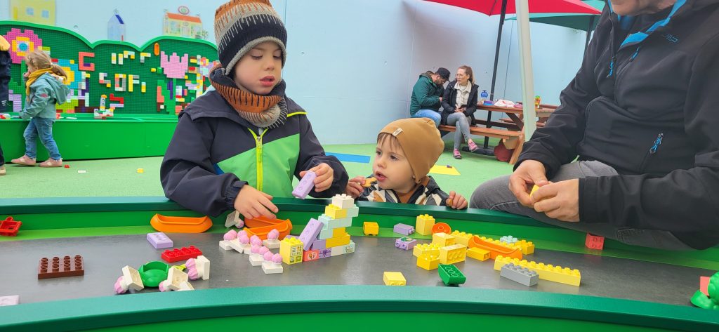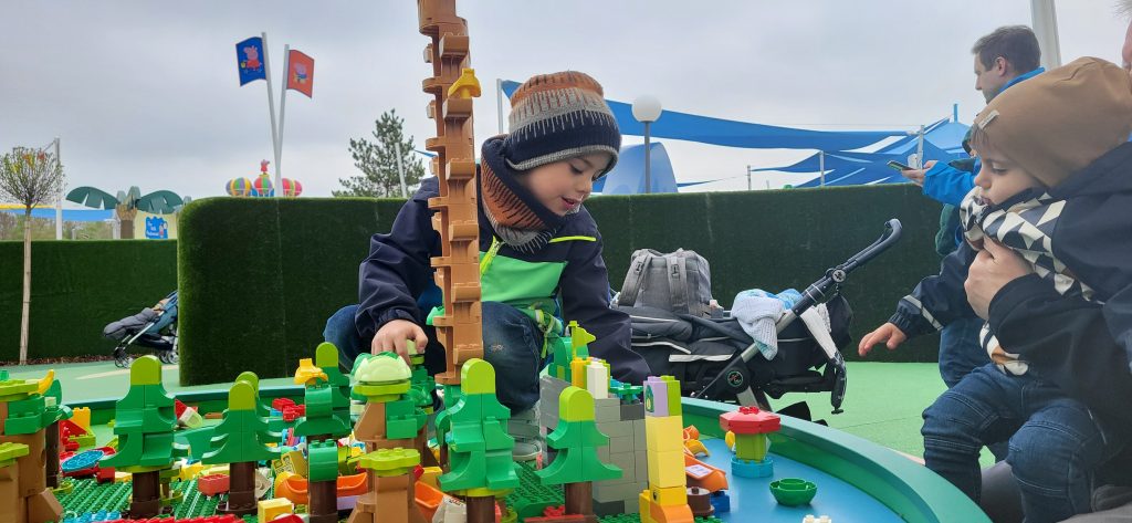 Stattdessen: Ab in den überdachten Lego Duplo Baubereich! Hier konnten sich beide Jungs kreativ austoben – bauen, entdecken, staunen. Wir Eltern freuten uns über viele Sitzmöglichkeiten – besonders praktisch, da ich immer wieder eine Ecke zum Stillen von Baby Megan suchte.