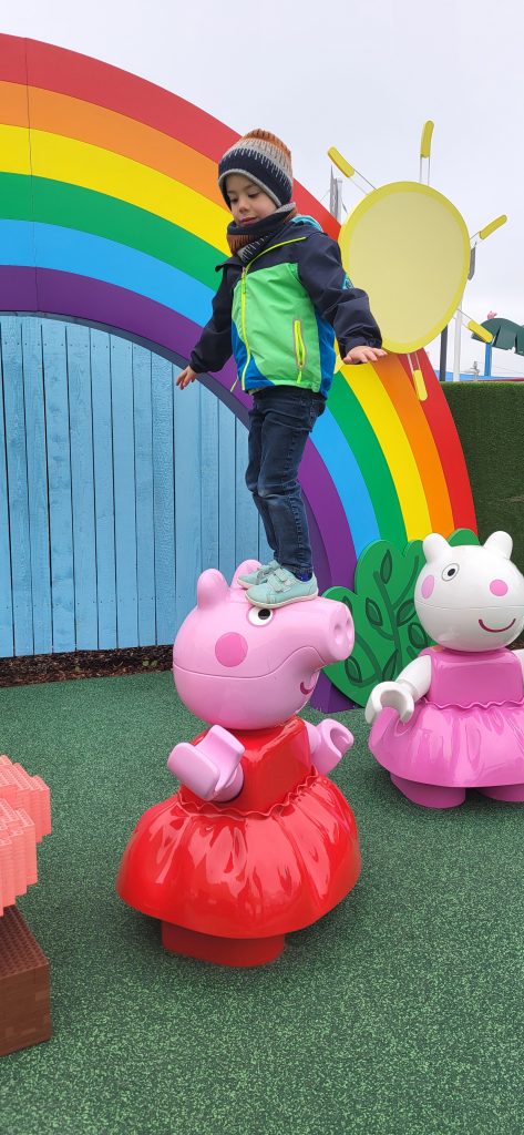 Pünktlich zum Start der Osterferien war es dann soweit: Am Donnerstag vor Ostern packten wir Oma, Opa, Kinder und Baby ein und machten uns auf den Weg. Der Park ist super zu erreichen – direkt über die Autobahn, ganz in der Nähe des Legoland. Man biegt einfach auf den ausgeschilderten Parkplatz ab, parkt – und schon ist man mittendrin im Peppa-Wunderland.