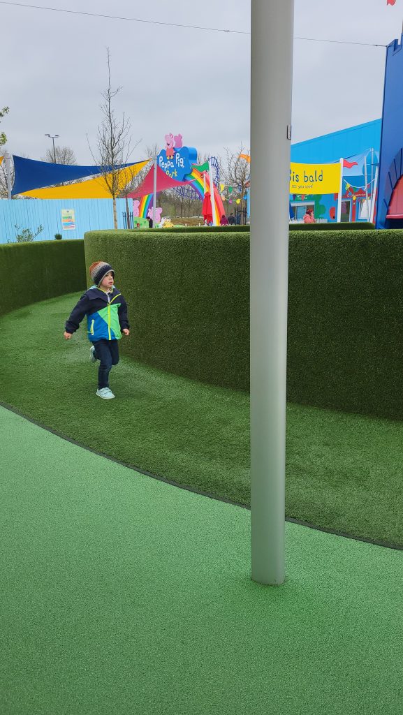 Schon beim Reingehen fiel uns auf, wie liebevoll alles gestaltet ist. Bunt, freundlich und genau so, wie man es aus der Serie kennt. Die Häuser sehen aus wie gemalt, überall stehen Figuren, und alles wirkt, als wäre man direkt in Peppas Welt hineingetaucht.