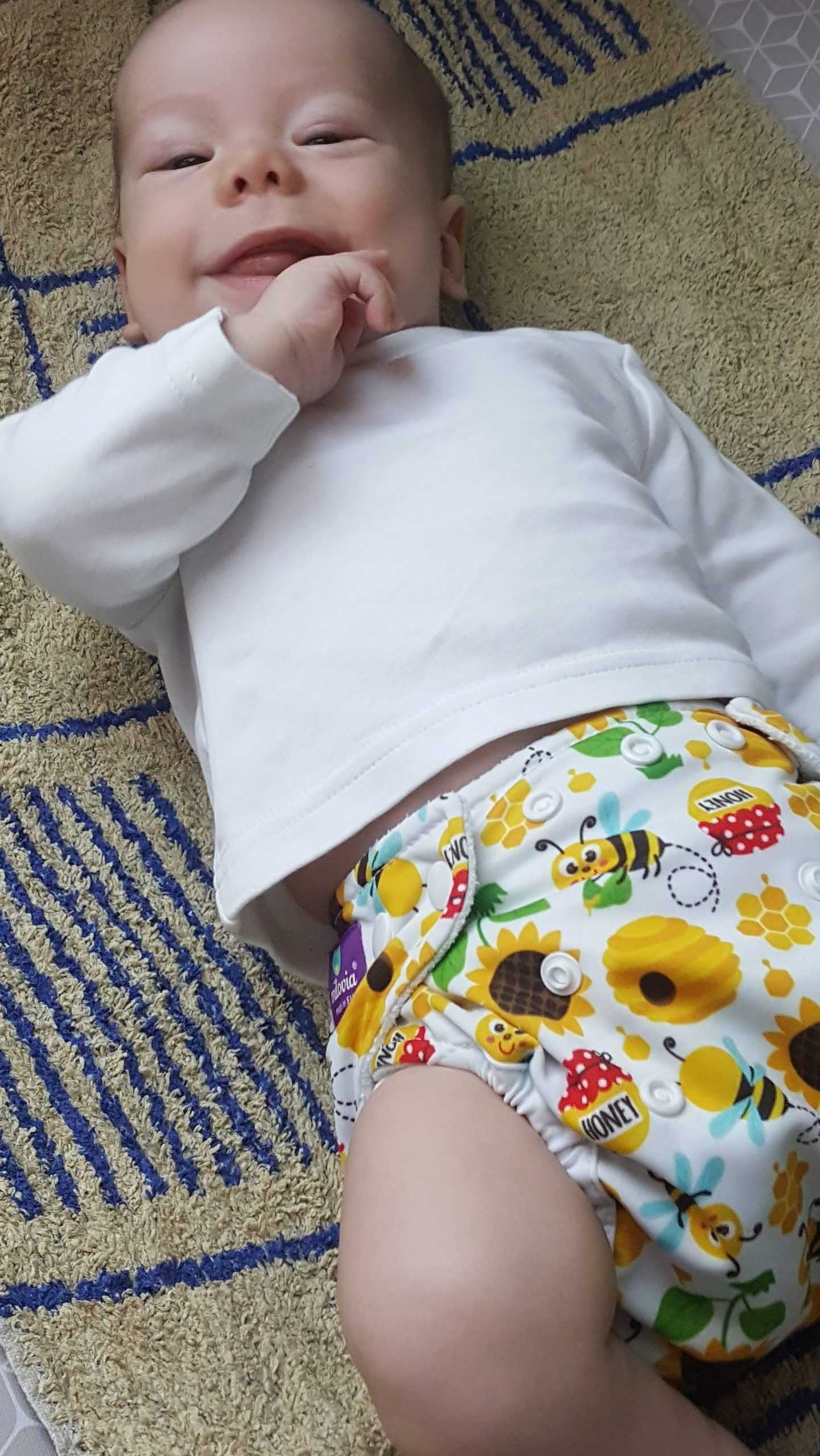 Mit dem zweiten Kind änderte sich vieles. Der Alltag wurde deutlich herausfordernder – zwei kleine Kinder bedeuten einfach ein anderes Tempo. Auch unseren zweiten Sohn wickelten wir anfangs mit Stoff, aber nur etwa drei Monate lang. Vor allem nachts war es schwierig: Wir mussten ihn mindestens drei Mal wickeln, was bedeutete, ihn aus dem Schlaf zu reißen, auszuziehen, zu reinigen, neu einzupacken … das war weder für ihn noch für uns nachhaltig – im wahrsten Sinne des Wortes.